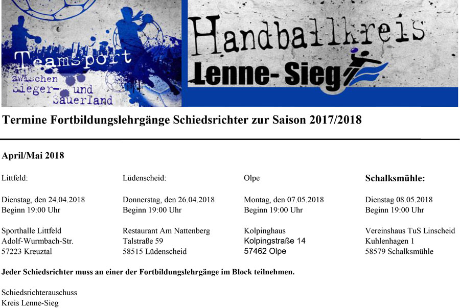 Aktuelle Termine Schiedsrichterfortbildungen