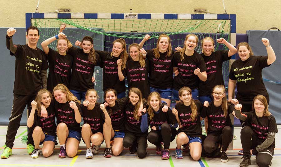 Jubel beim RSVE Siegen Handball. Die weibliche C-Jugend holt den Meistertitel im Handballkreis Lenne-Sieg, trotz einer 15:19-Niederlage im letzten Spiel beim Tabellenzweiten HSG Lüdenscheid. Es war die einzige Niederlage in der aktuellen Saison. Nur bei einem Sieg mit über acht Toren hätten die Sauerländer dem RSVE die Meisterschaft noch vor der Nase wegschnappen können. Am Ende feierte das Team aus der Siegener Südstadt gemeinsam mit den mitgereisten Fans ausgelassen den Titel. Die Meister-T-Shirts hatten die RSVE-Mädchen schon mit im Gepäck.